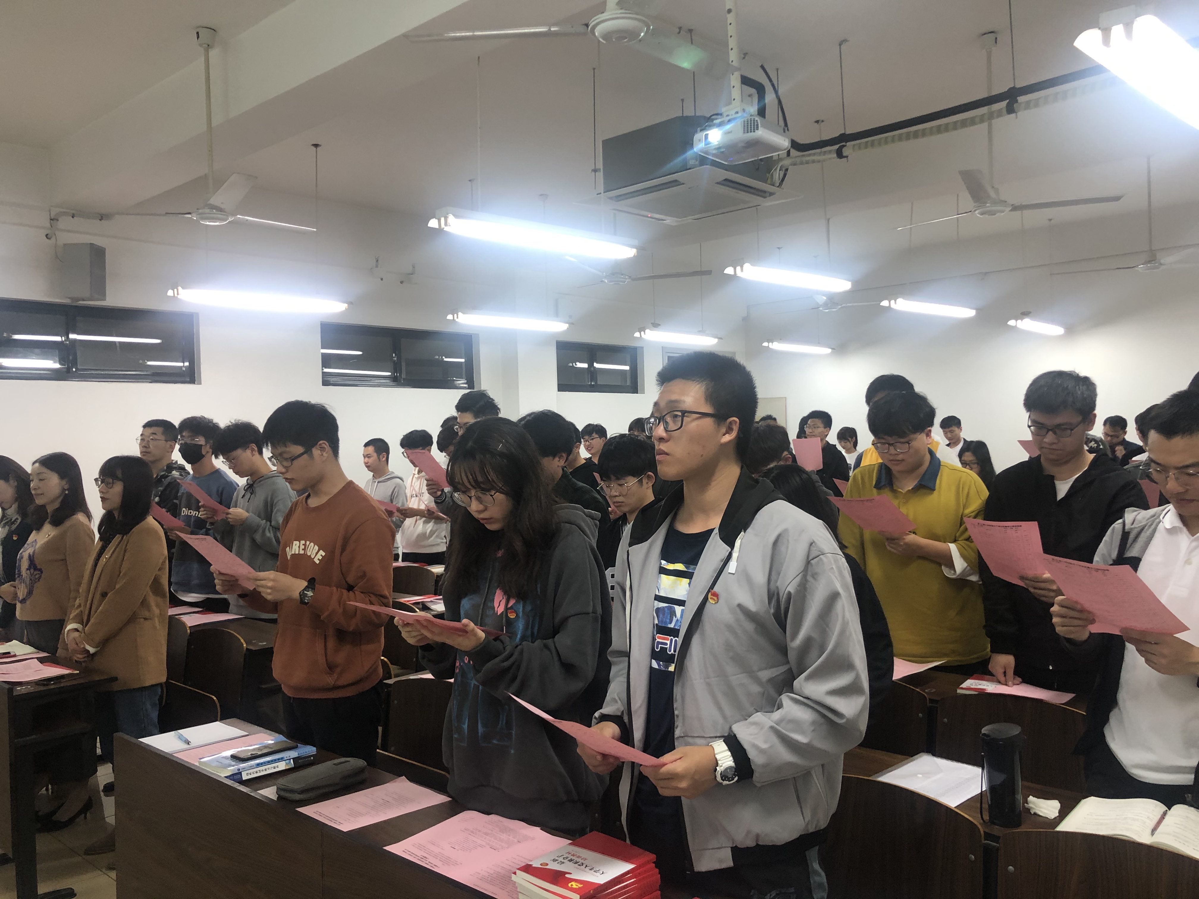 国歌声拉开了典礼的帷幕。张腾介绍出席典礼的嘉宾以及培训班学员的课堂纪律和请假制度,仇芳宣读本次党校授课计划。土建学院蔡誉升同学代表全体学员发言并宣读了《入党积极分子党校学员承诺书》,承诺在接下来的党校学习以及日常生活中要以一名共产党员的标准严格要求自己,积极向党组织靠拢。