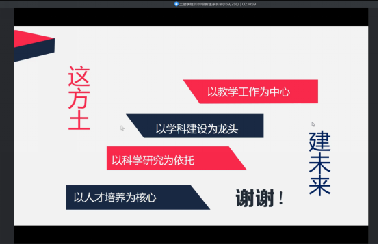 会议伊始,土建学院党委书记王银辉老师向20级新生及家长介绍了学校的基本情况。王书记从学院的办学历史、师资情况等方面入手,强调了土建学院“以教学工作为中心,以学科建设为龙头,以科学研究为依托,以人才培养为核心”的宗旨,在这过程中也让新生及家长对学院基本情况有一个直观的了解。