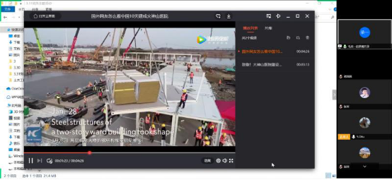 首先,支部书记徐亦冬同志认真传达了“土木建筑工程党委关于开展疫情防控期间土建学院党建工作的通知”。主要包括三个内容,包括“指尖学习力”建设,“屏幕凝聚力”建设和“砼话传播力”建设。然后,组织委员毛荣一同志组织大家观看了火神山医院建设的视频以及这一工程在国内外的影响。