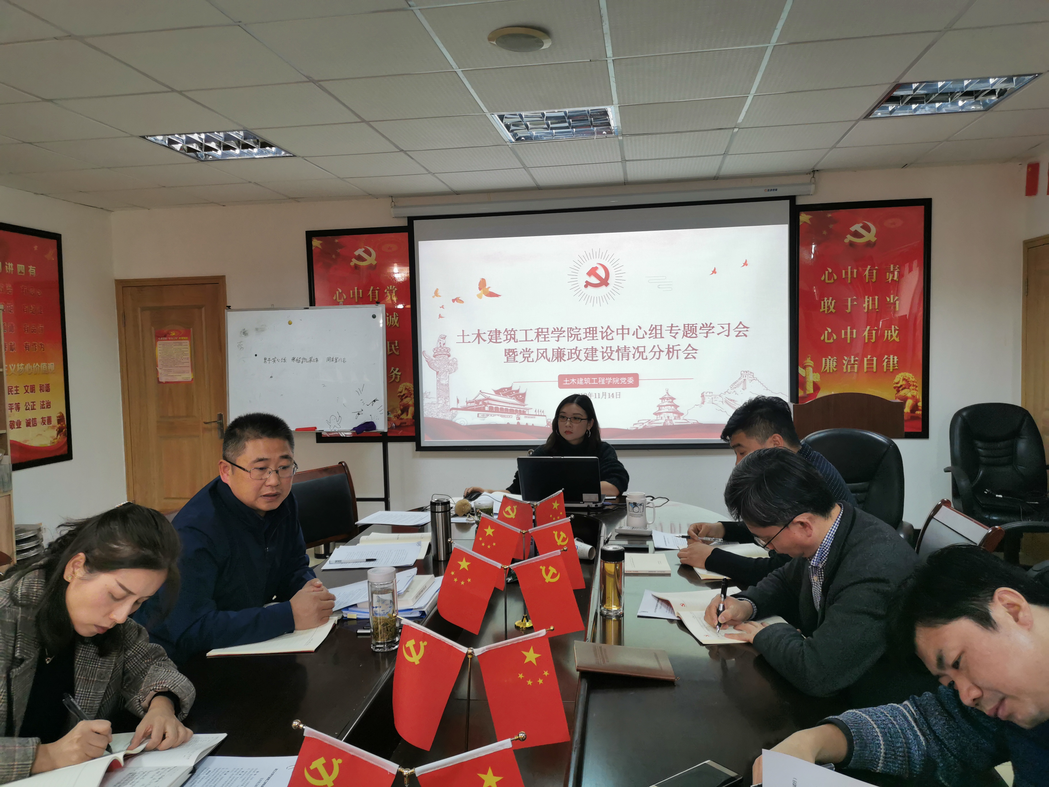 11月14日下午,土建学院党委理论学习中心组召开党风廉政建设专题学习会,深入开展党风廉政建设学习。学院领导班子全体成员、党委委员、党支部书记参加学习,会议由学院党委书记王银辉主持。