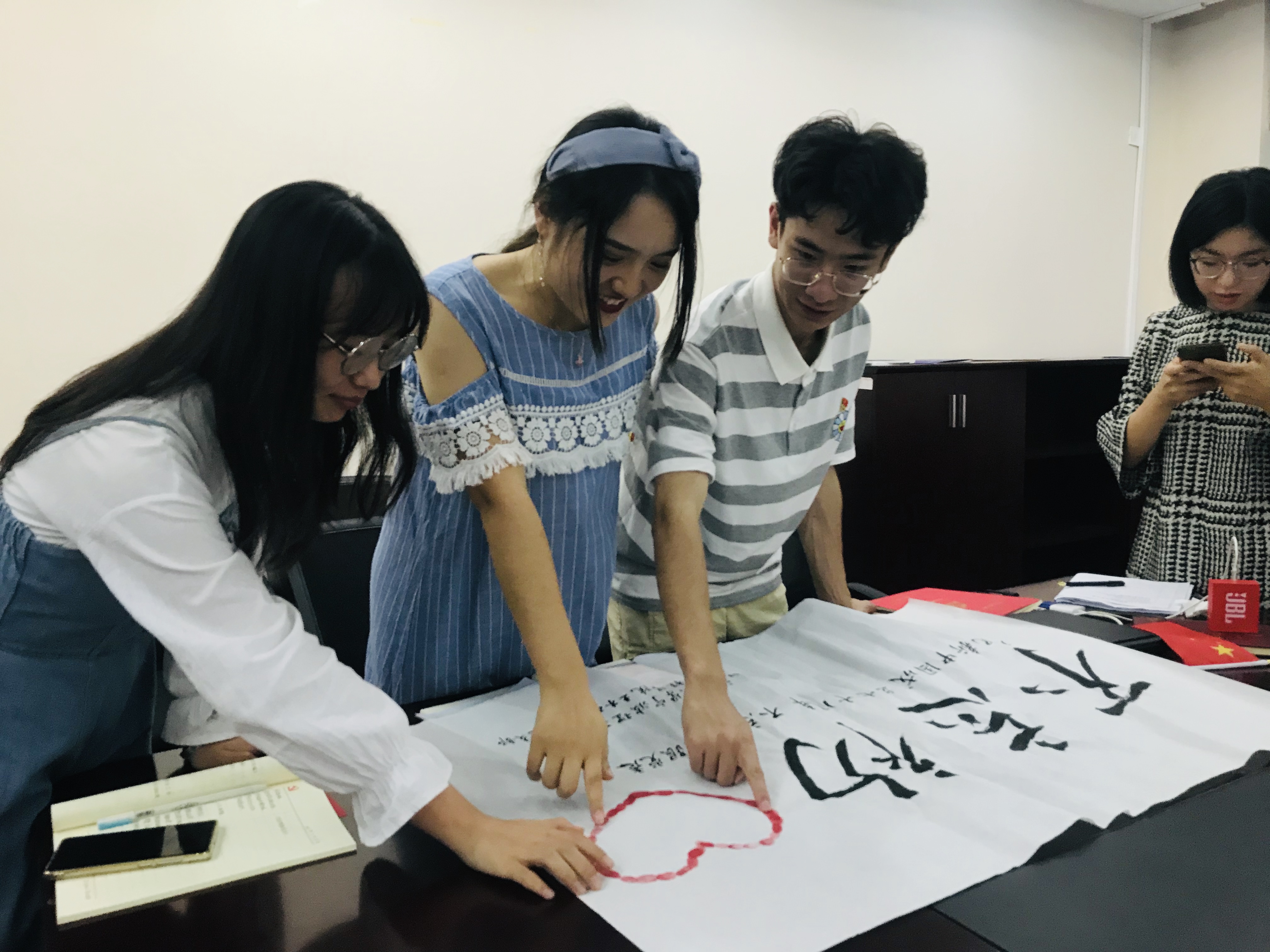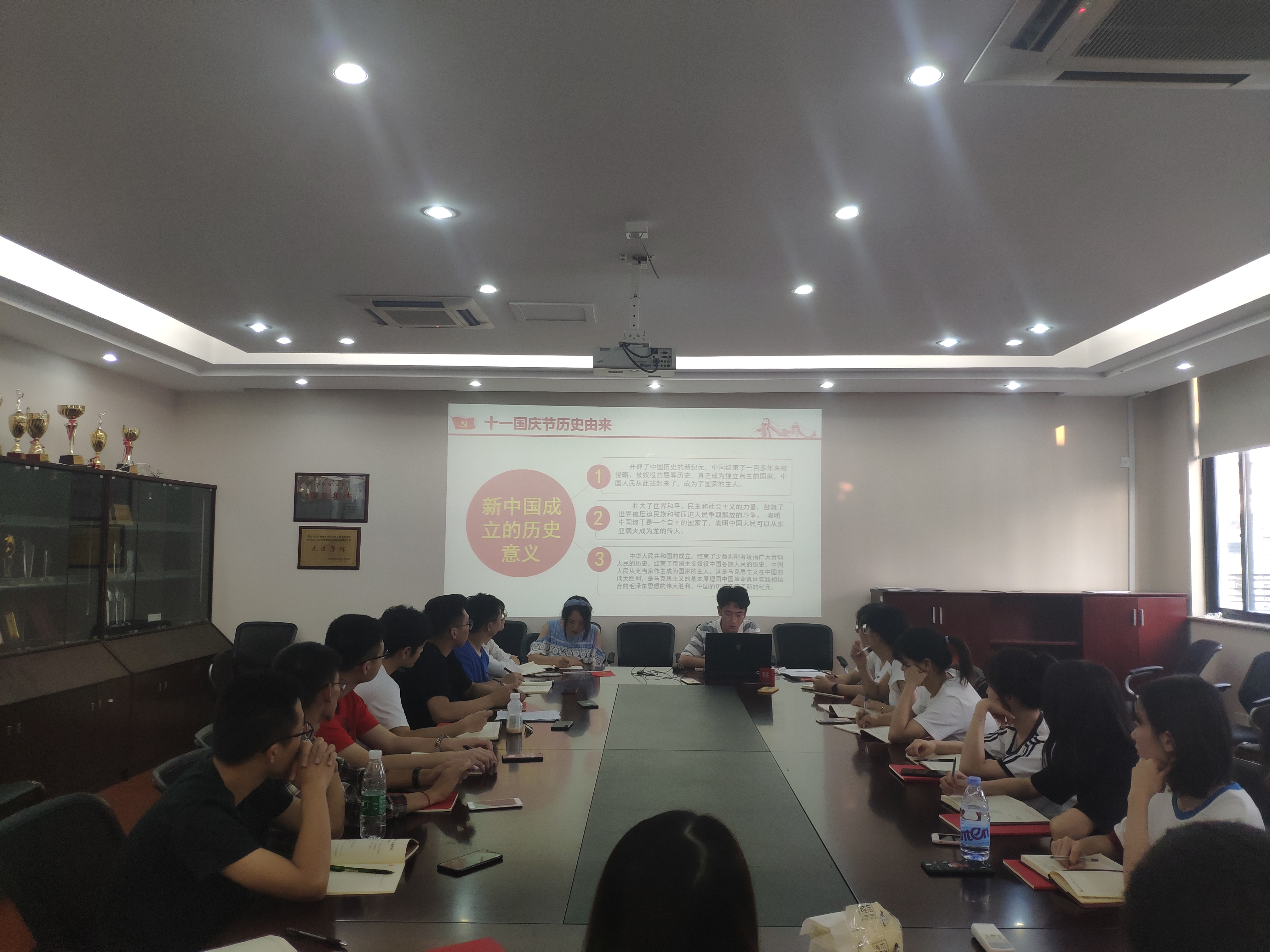 主题展结束后,土木学生党支部组织了主题党日活动交流会,主题为”不忘初心、牢记使命暨庆祝新中国成立70周年”。会上,我们了解了十一国庆节的历史由来,回顾了新中国成立70年来的光辉历程及70年来的伟大奇迹,并对奋进新时代的自己提出了更高要求。除此之外,我们迎接了八名新成员,并就支部最近的工作进行了总结。同时,支部开展了特色环节,以每人的手印组成一个“心”型表达自己对于祖国的深刻热爱。另外,大家齐唱红歌“歌唱祖国”,会议在嘹亮的歌声中落下帷幕。