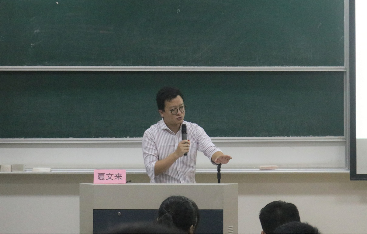 随后,“不忘初心,牢记使命”主题思政课由校团委副书记夏文来老师主讲,夏文来老师从两个大方向引导学生深入思考,一是爱国主义、民粹主义和民族主义;二是新时代下的偶像行为。在本次课中,他引领着同学们回顾了中国的崛起,强调了推己及人的爱国主义。他用生动形象的例子再现了共产党人的赤诚之心。。随后,在团歌的余音中,土建学院第九届三阶团校启动仪式暨主题团日活动圆满落幕。