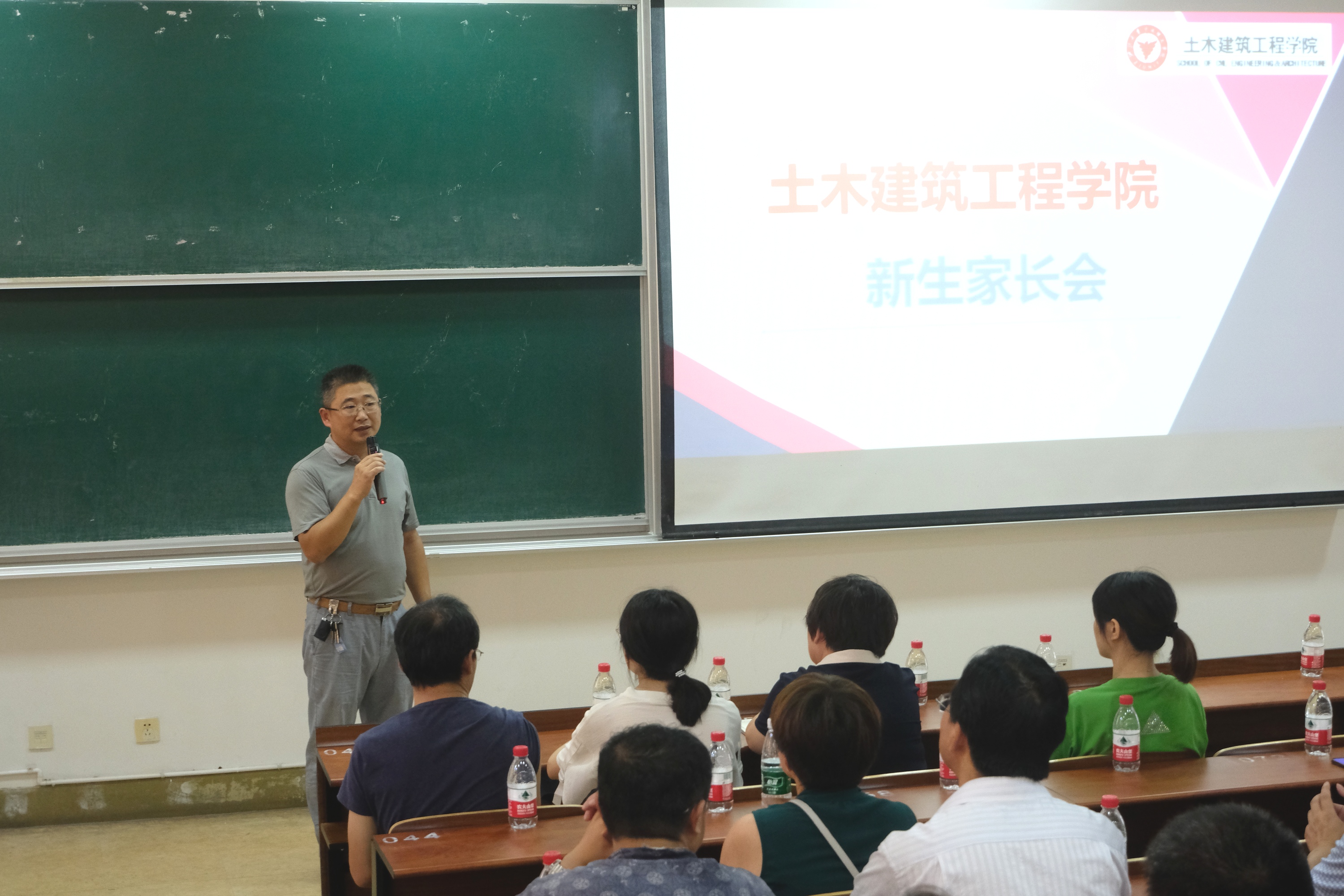 金秋明媚,土木建筑工程学院喜迎2019级新生报到!为了让刚刚离开菁菁高中的新生家长们对学院各方面情况有更深入的了解,2019年8月24日土木建筑工程学院在SC204召开了新生家长会。出席本次会议的有我院党委书记王银辉、党委副书记韩晶晶、思政副主管张腾、2019级新生辅导员沈露、近百名新生家长。