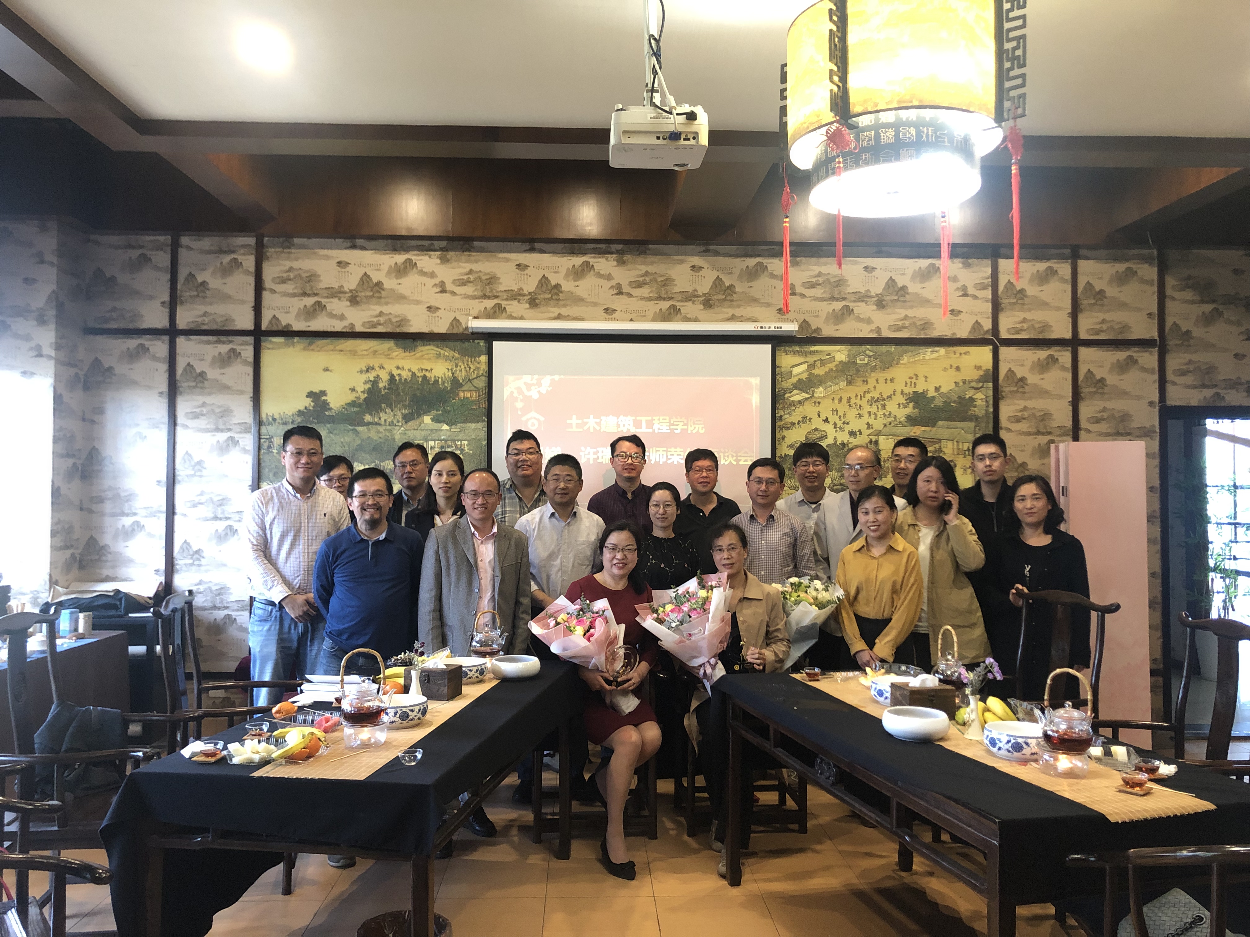 五月,花开的季节,感恩的季节!5月9日下午,大益茶室里有欢笑,有感激,有不舍。土建学院分工会为王娟娣老师和许瑞萍老师举行了简单而又温馨的荣休座谈会。土建学院书记王银辉、副院长王文军、副院长张科锋等部分班子成员及土建学院20多位教师共同见证了这一难忘时刻。