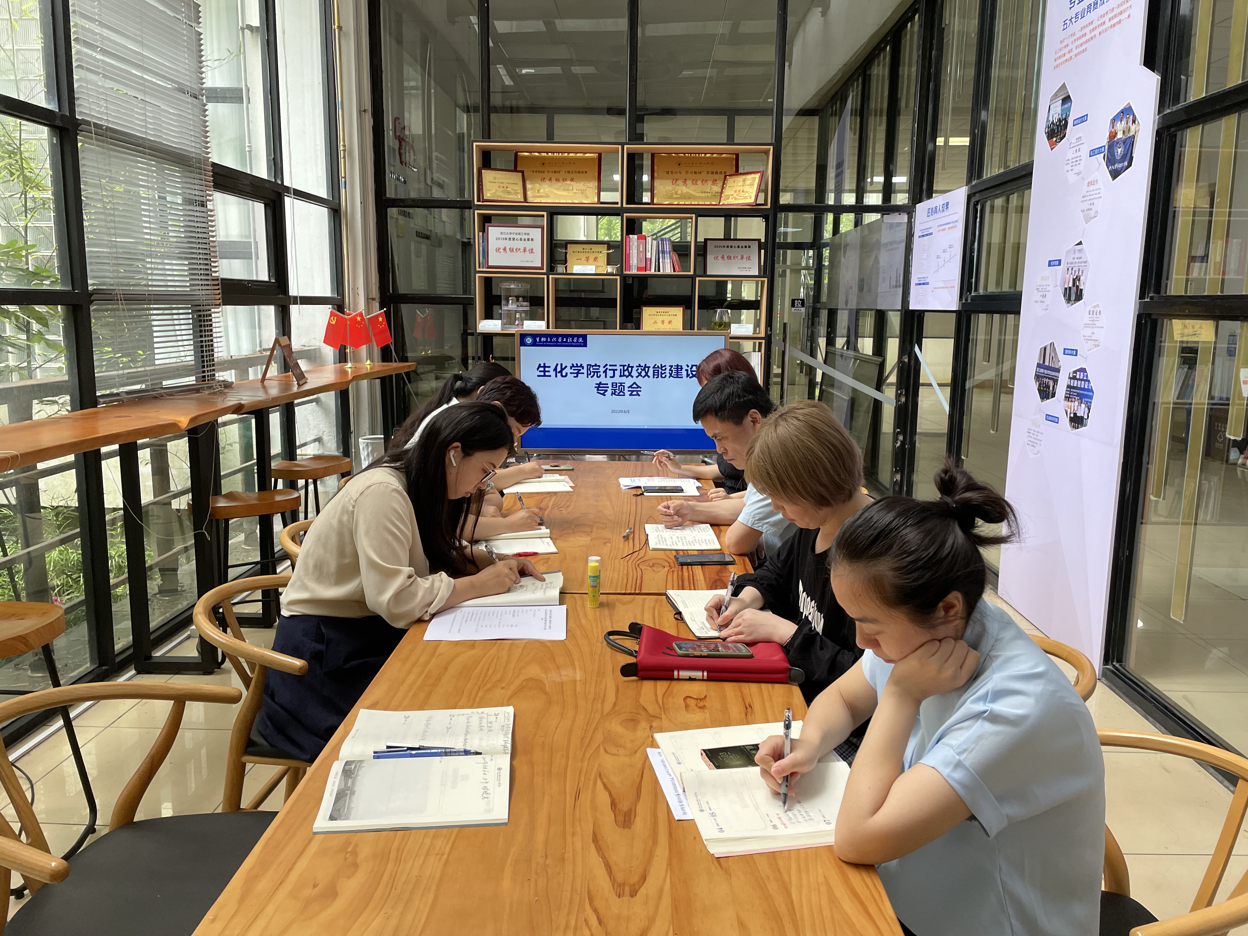 6月6日上午,生化学院召开行政效能建设专题会,学院党委副书记(主持工作)楼文军、党委副书记王常青及党政办、教务办、学工办全体工作人员参加会议。会议由王常青主持。