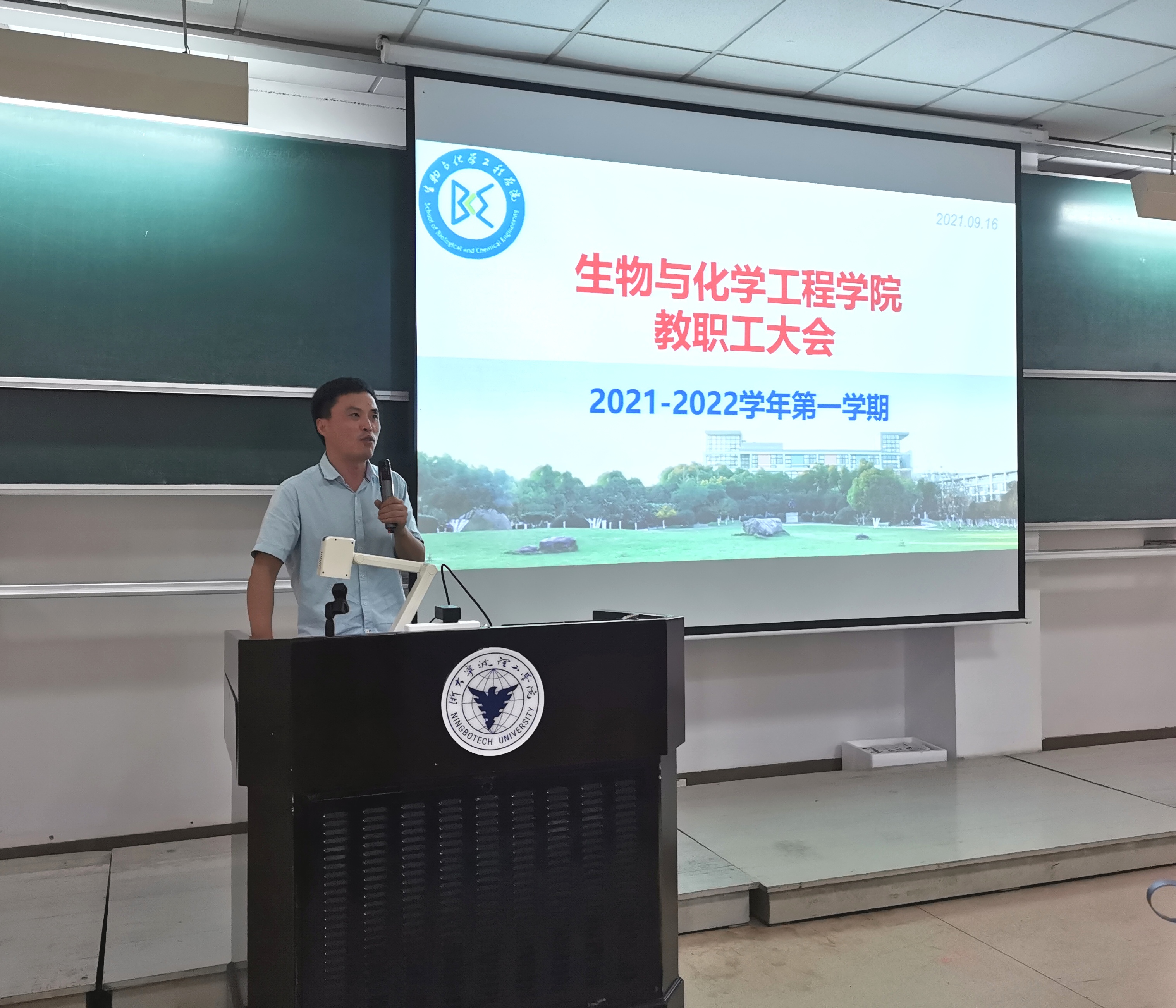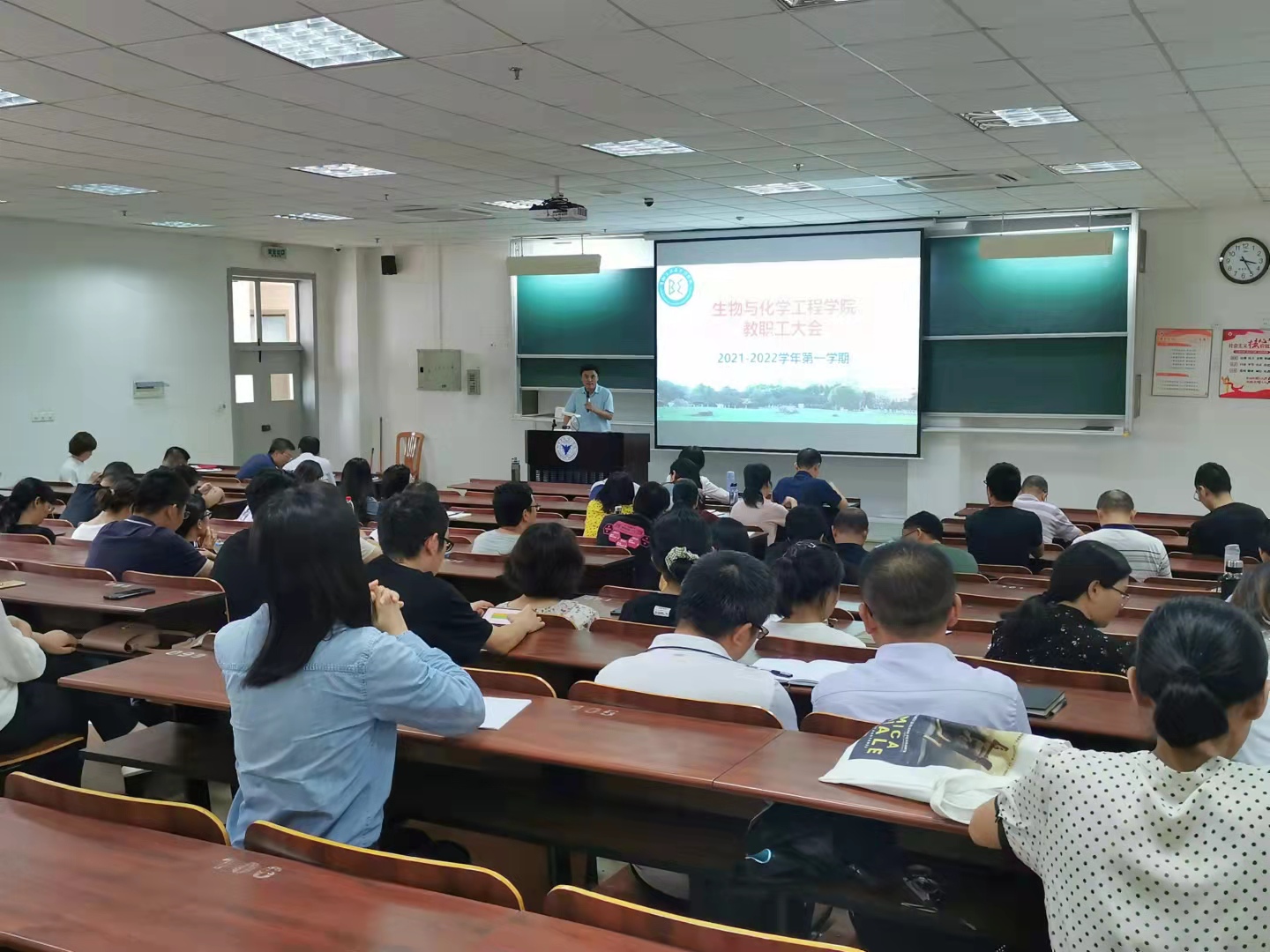 2021年9月16日下午,生化学院在NF101举行新学期全体教职工大会。大会由学院党委副书记楼文军主持。