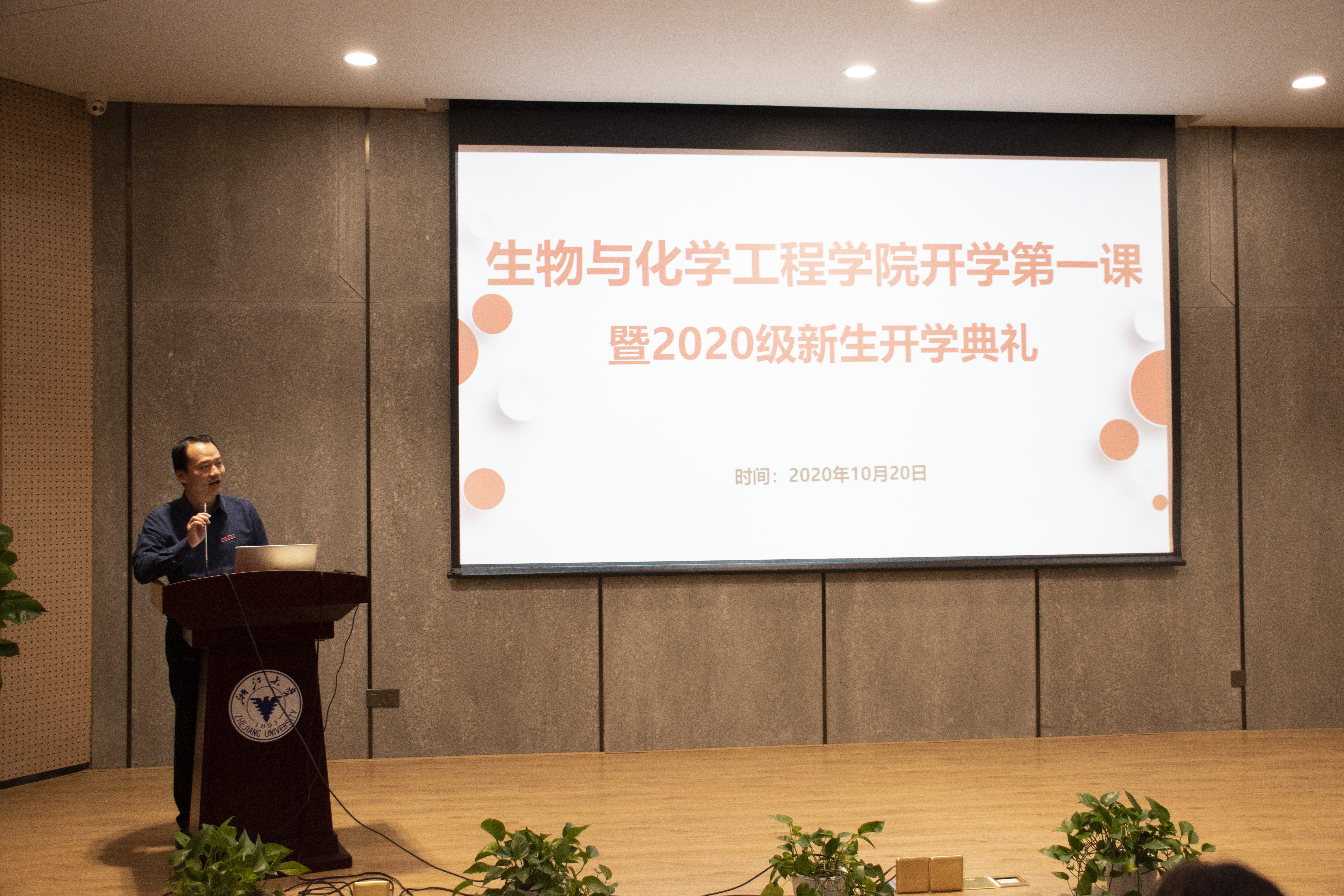 10月20日晚,生化院开学第一课暨2020级新生开学典礼在启新大讲堂举行。参加本次开学典礼的有学院院长方征平、党委书记楼文军、副院长沈昊宇、各专业负责人、新生班导师、生化学院全体辅导员及2020级新生,本次大会由学院党委副书记赵涵主持。