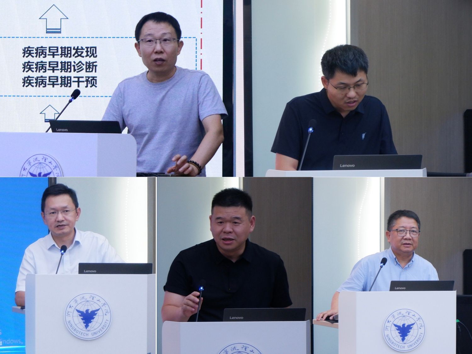仪式结束后,主动健康共同体学术论坛拉开帷幕,学术论坛由生化学院院长侯阳主持。论坛上,生化学院副院长王进波作“主动健康——未来健康的终极选择”主题报告、北大鄞州数智健康联合研究院副院长刘志科作“北大鄞州数智健康联合研究院平台及成果”主题报告、宁波大学附属人民医院党委书记张逸作“医疗大数据深度挖掘与临床需求分析”主题报告、宁波市第六医院副院长徐吉海作“校-地-医协同科技创新路径探索”主题报告、宁波市鄞州区钱湖医院院长胡勤勇作“人口老龄化背景下健康管理模式创新”主题报告。随后,与会嘉宾围绕汇报内容和校地双方进一步落地合作形式等维度进行深入研讨交流。
