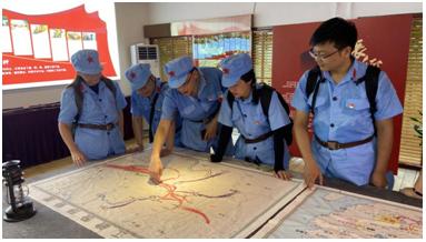 活动开始前,老师们统一着装,在红军广场列队,学院党总支书记伍醒首先向大家强调了开展此次主题党日活动的意义,并带领全体党员面向党徽重温了入党誓词,老师们铿锵有力的宣誓声表达了不忘初心、牢记使命的坚强决心。随着红军的足迹,长征路上的重要场景一一呈现,从瑞金出发、血战湘江、强渡乌江到遵义会议、四渡赤水、巧渡金沙江、强渡大渡河,再到飞夺泸定桥、爬雪山、过草地、大会师等,老师们在每个场景前驻足回忆,缅怀历史,在沉浸式的情景中,重温红军长征这段波澜壮阔的历史。最后,老师们到达东海学堂红色国学教育中心,参观了红军长征时期物品,大家围在红军长征路线图前展开了热烈的讨论交流,进一步加深了对这段历史的理解。